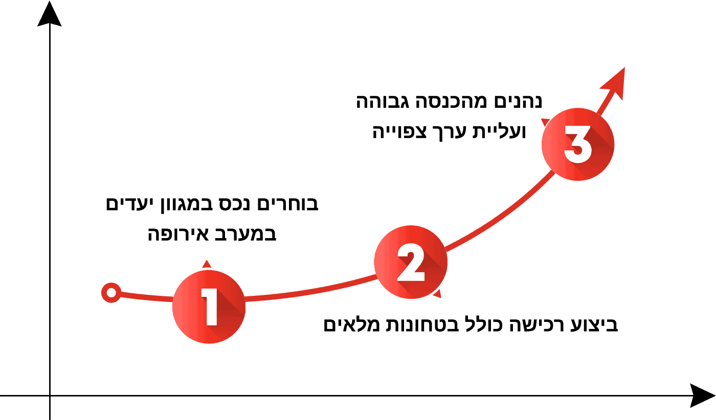 ההשקעות הן בנכסים באיזורי ביקוש במערב אירופה; גרמניה ואיטליה, איזורים מבוססים, הנכסים בדר"כ כבר מושכרים ומניבים.